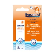 NOVI Bepanthol® negovalni balzam za ustnice ščiti, obnavlja in neguje suhe ter razpokane ustnice v vseh letnih časih. Z zaščitnim fakotrjem SPF 30 zagotavlja visoko zaščito pred škodljivimi UVA in UVB-žarki. Kombinacija pantenola, vitamina E in čebeljega voska, za vlaženje in zaščito ustnic.